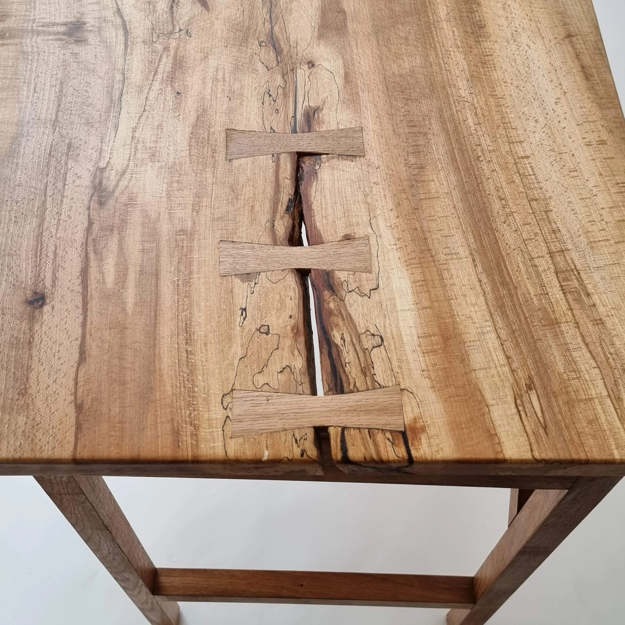 Oak side table, bowtie detail