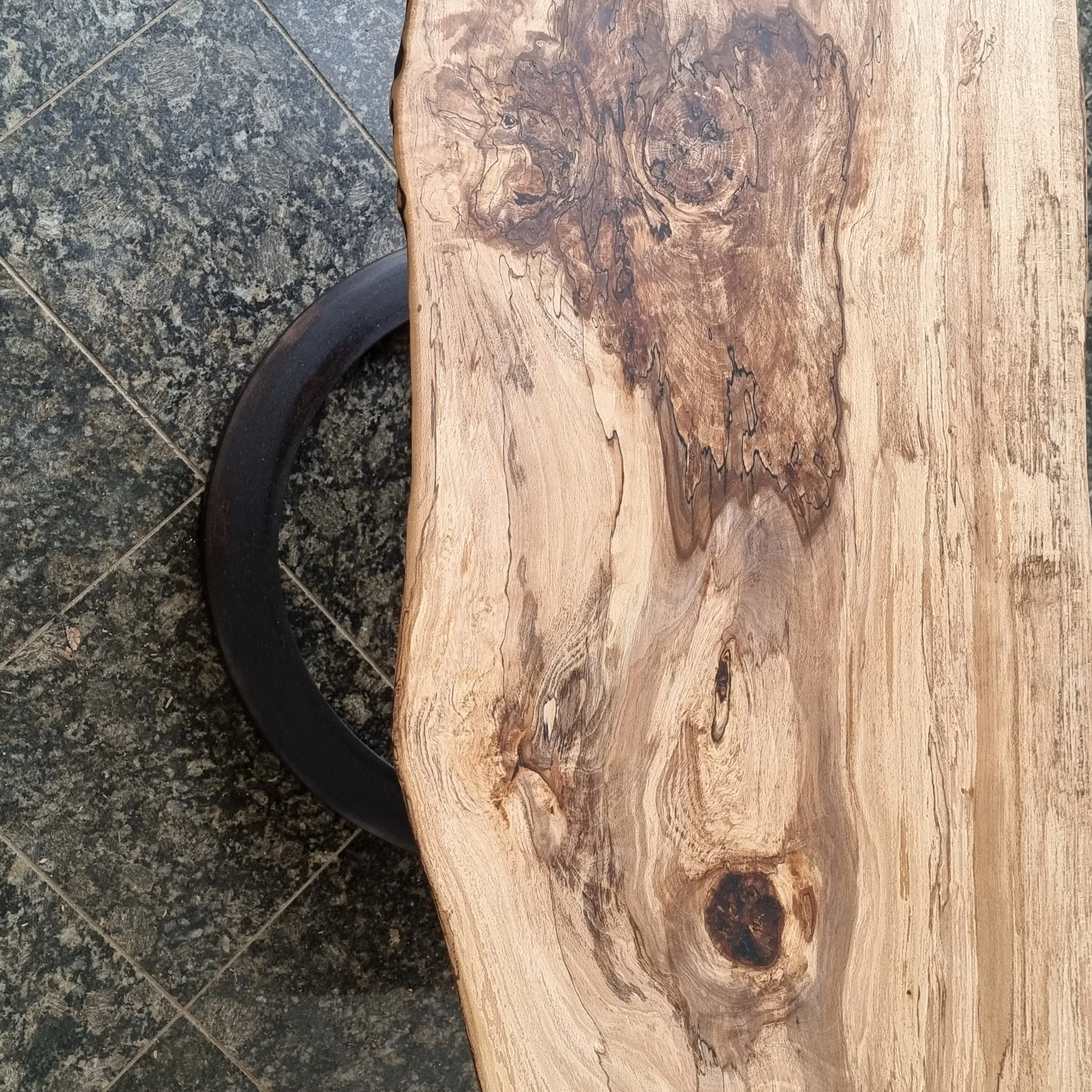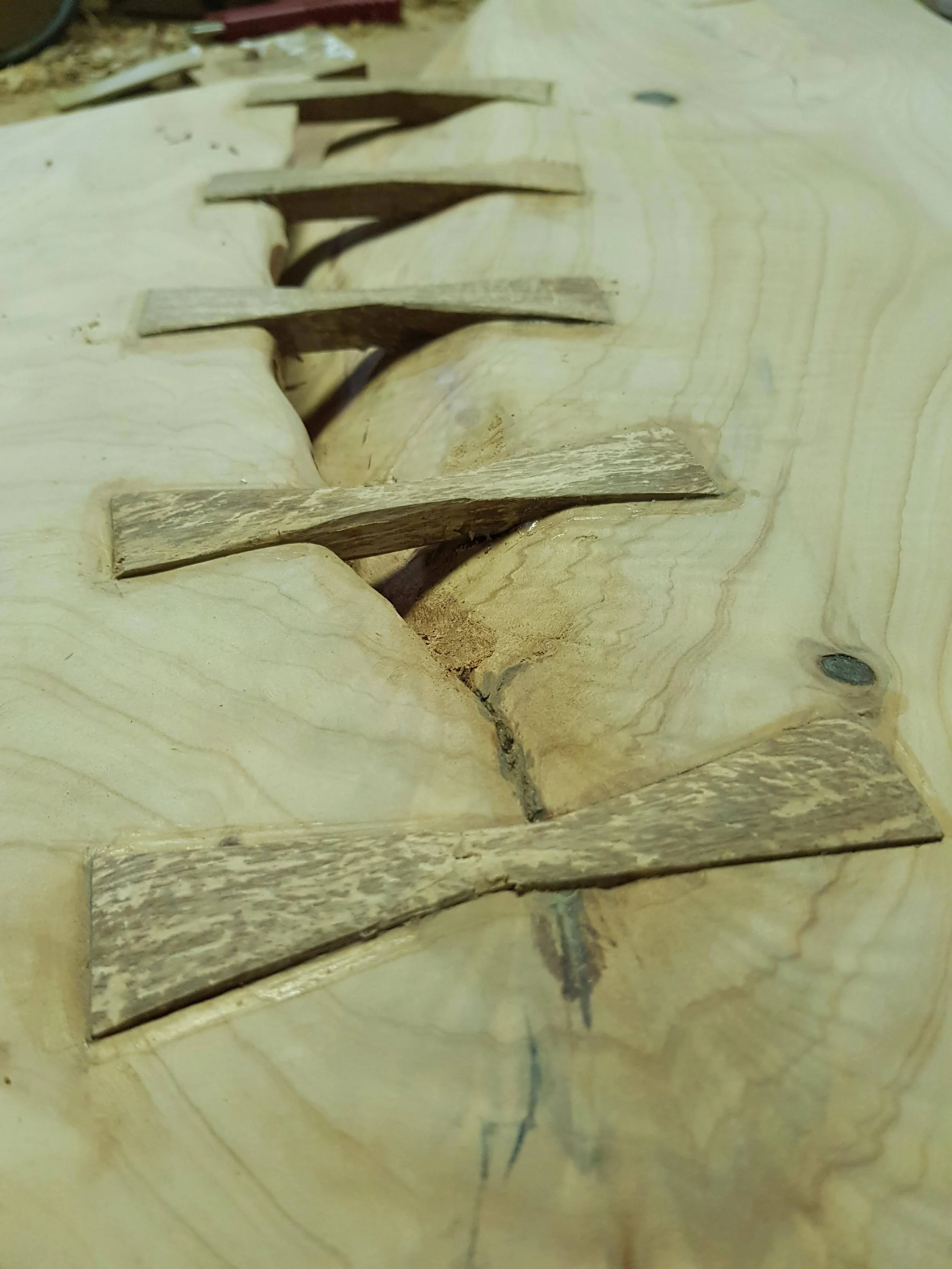 Elm bowtie joints on a cypress slab