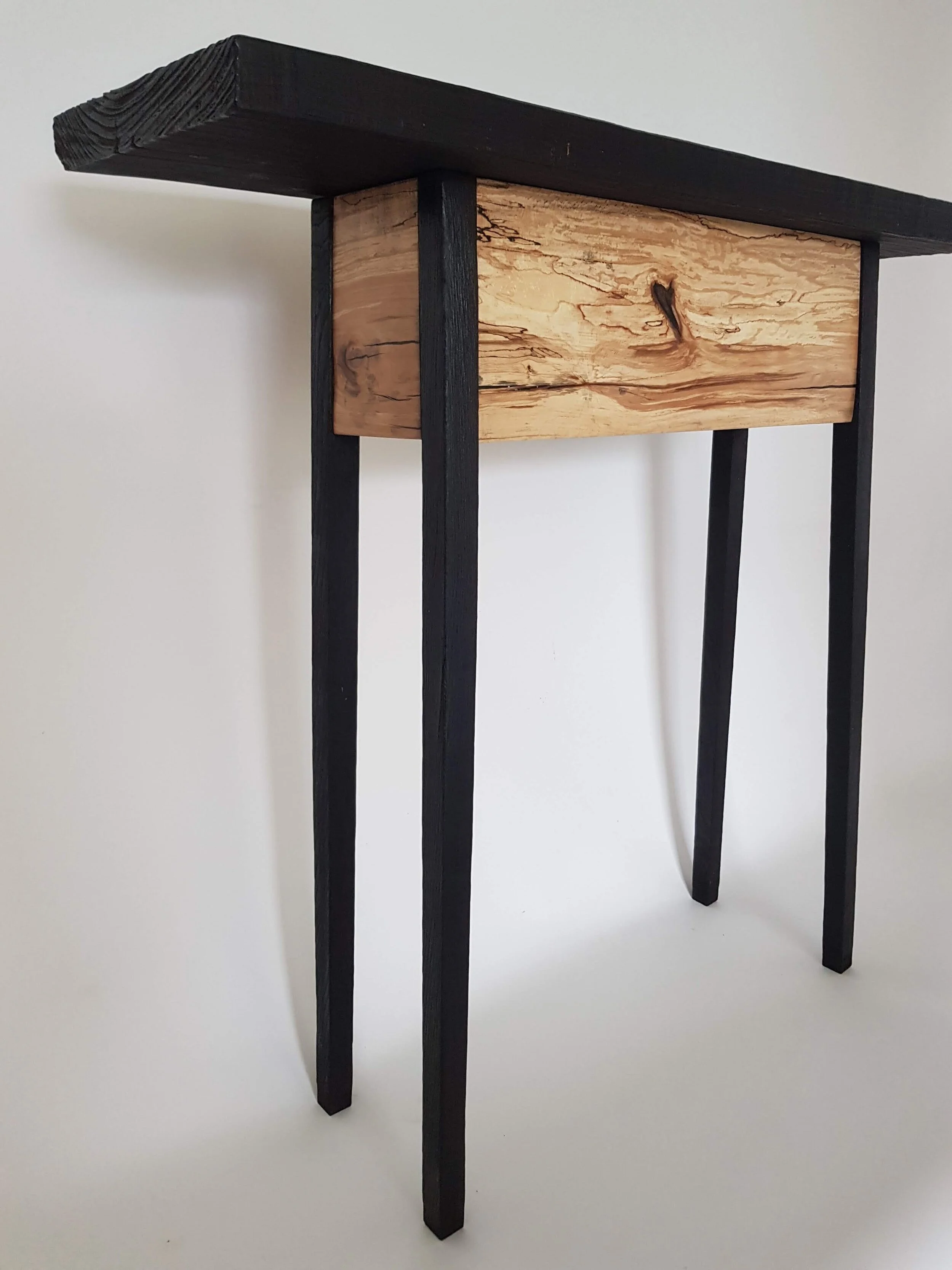 custom shelves, ash with charred spruce brackets