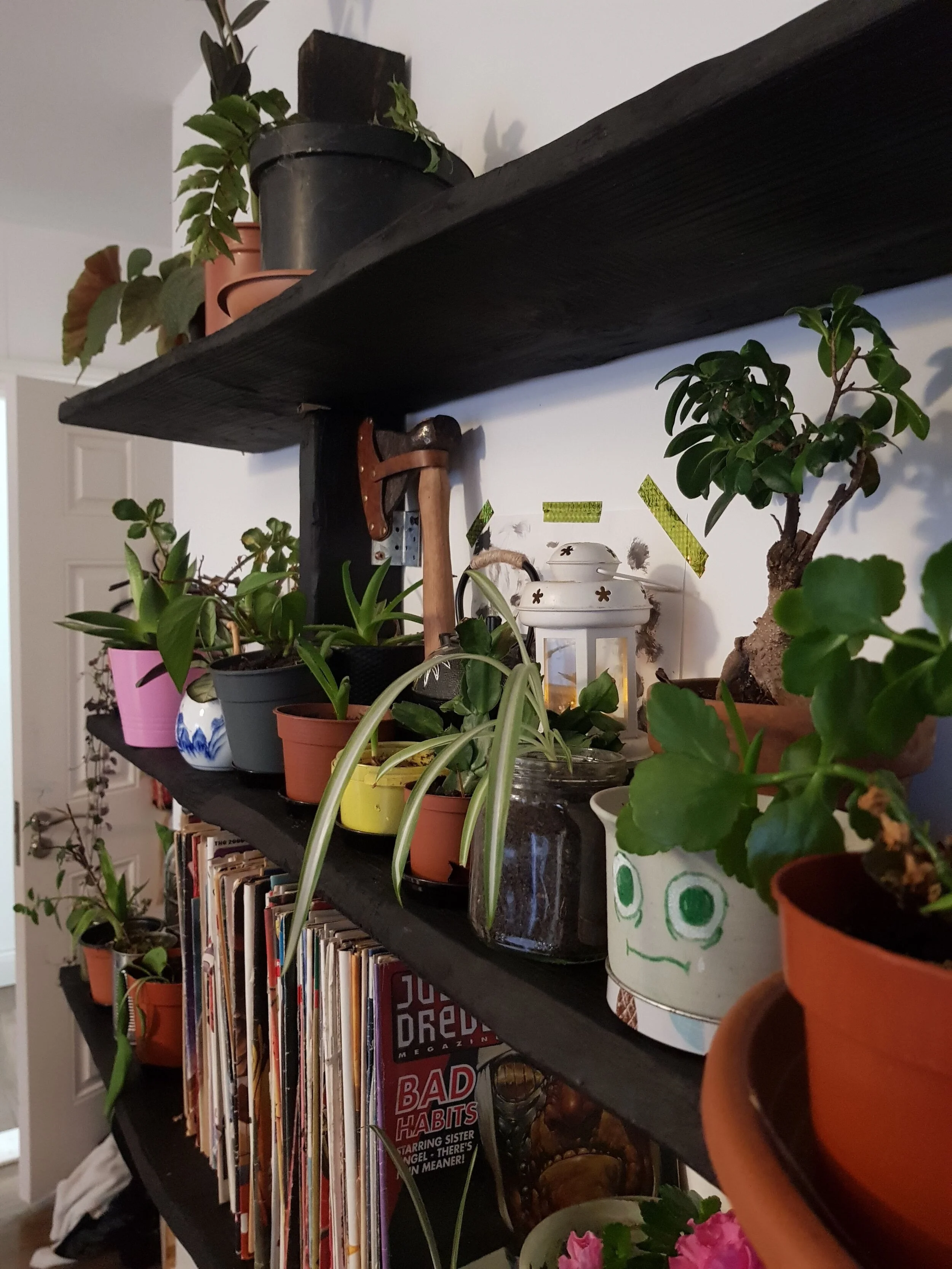 Charred pine wall mounted bookshelves