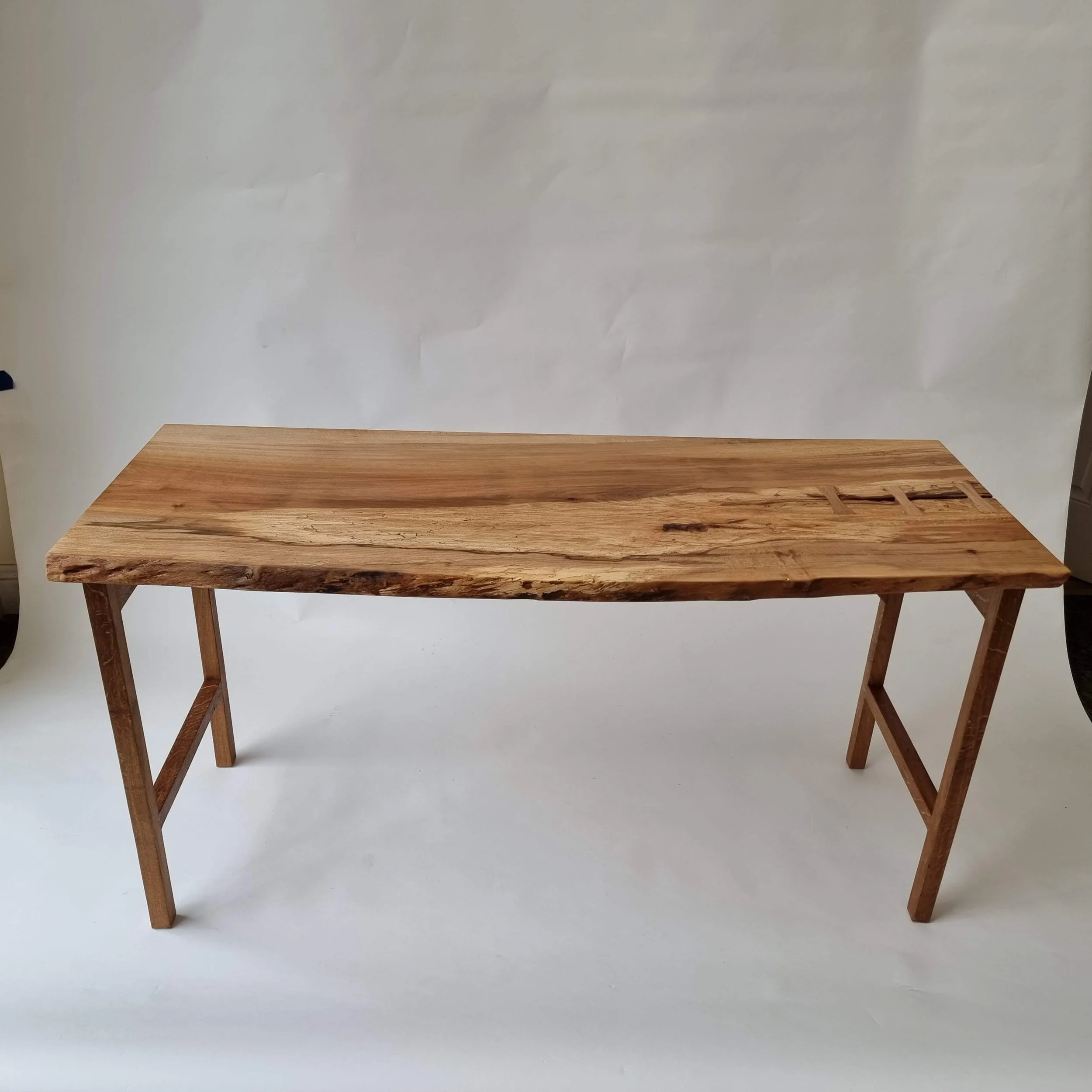 Beech console table with turned legs